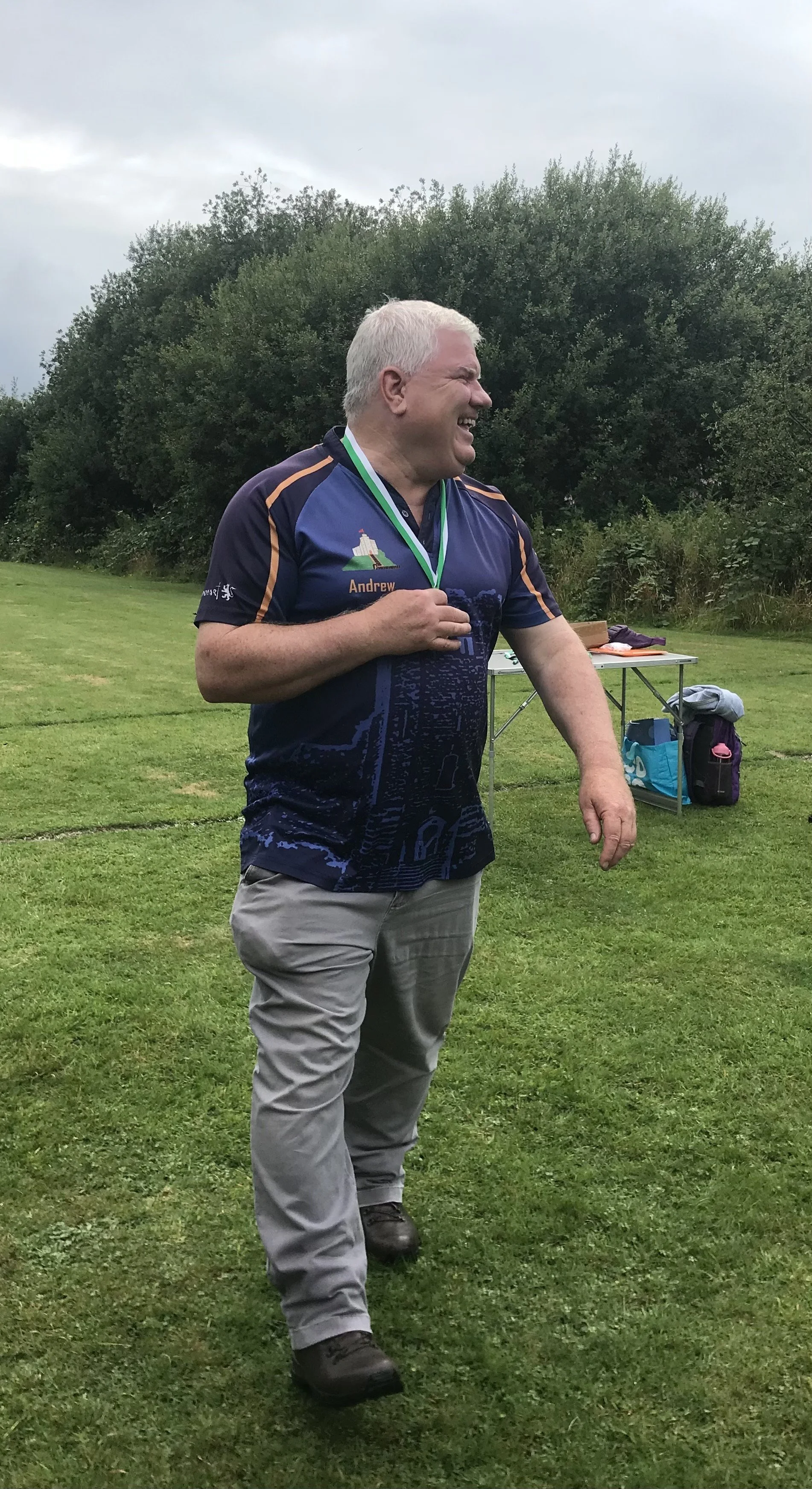 Also in the longbow division, Andrew rallied after a slow start. Trailing by 60 points at lunchtime, he finally remembered to do some archery, and in the afternoon came storming back to secure the Welsh Senior Mens Longbow Champion title.