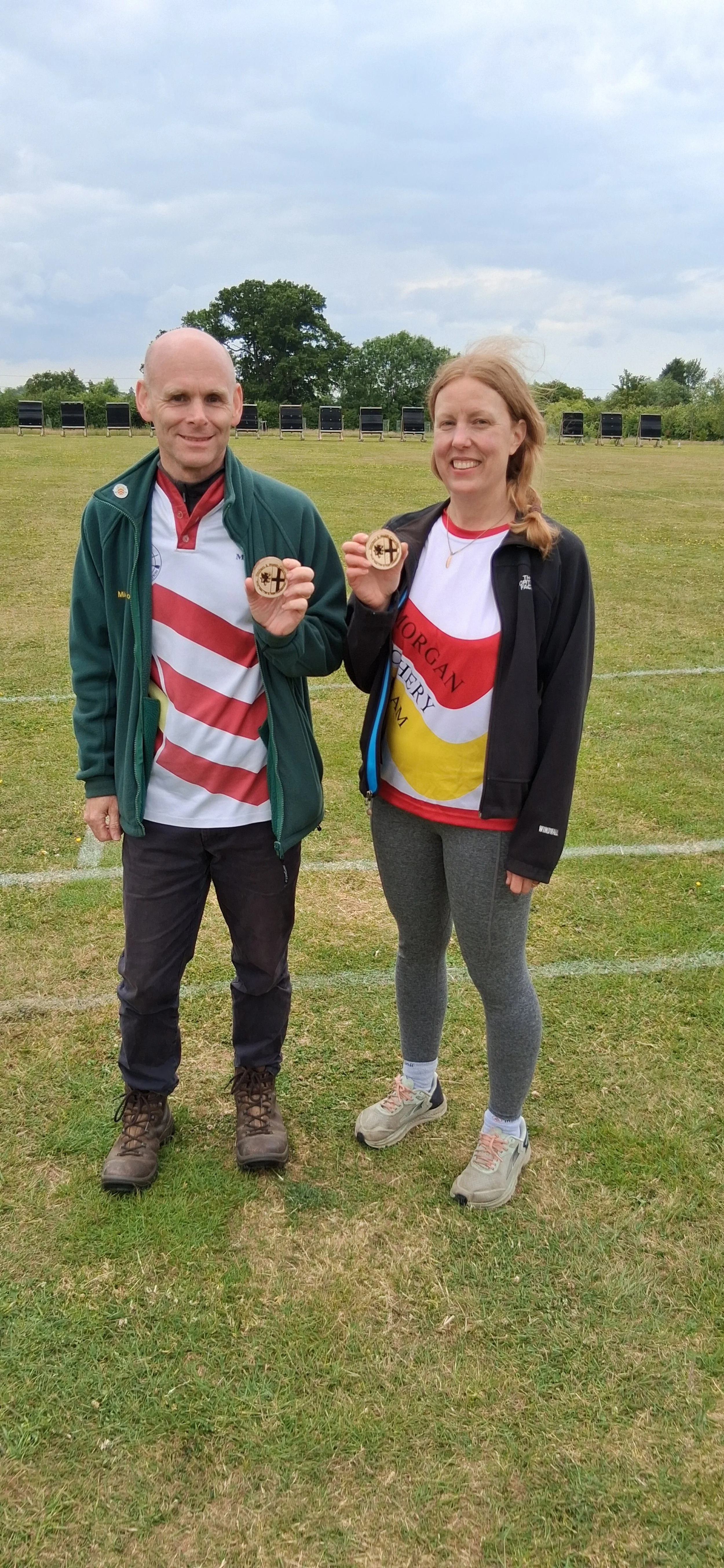 At the end of the 10 dozen arrows, cakes and cups of tea the final results held good news. Andrew had taken the Bronze medal for the Gent Barebows and Kathy took home the Gold for the Lady Barebows plus a well deserved Red Dragon achievement award badge.