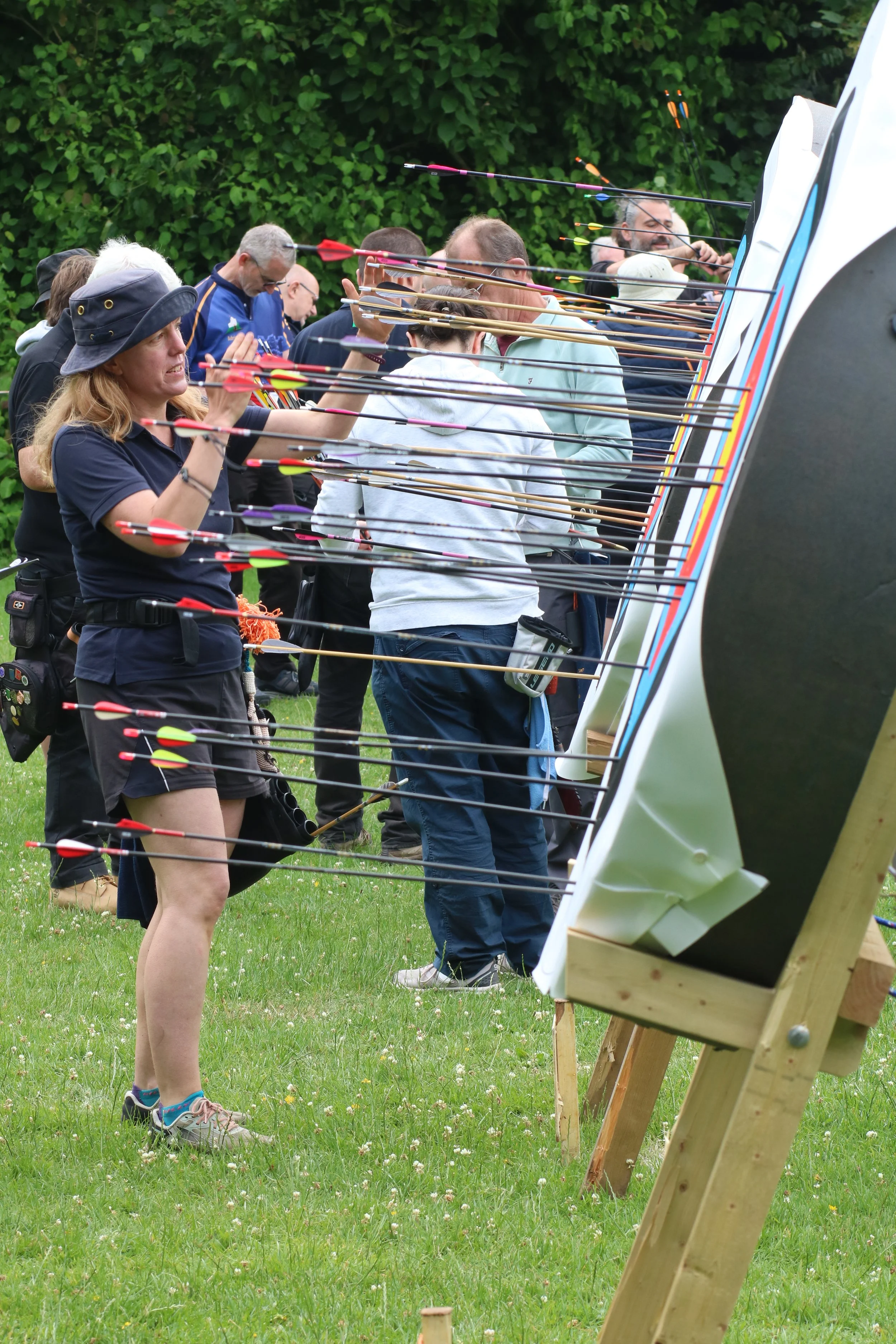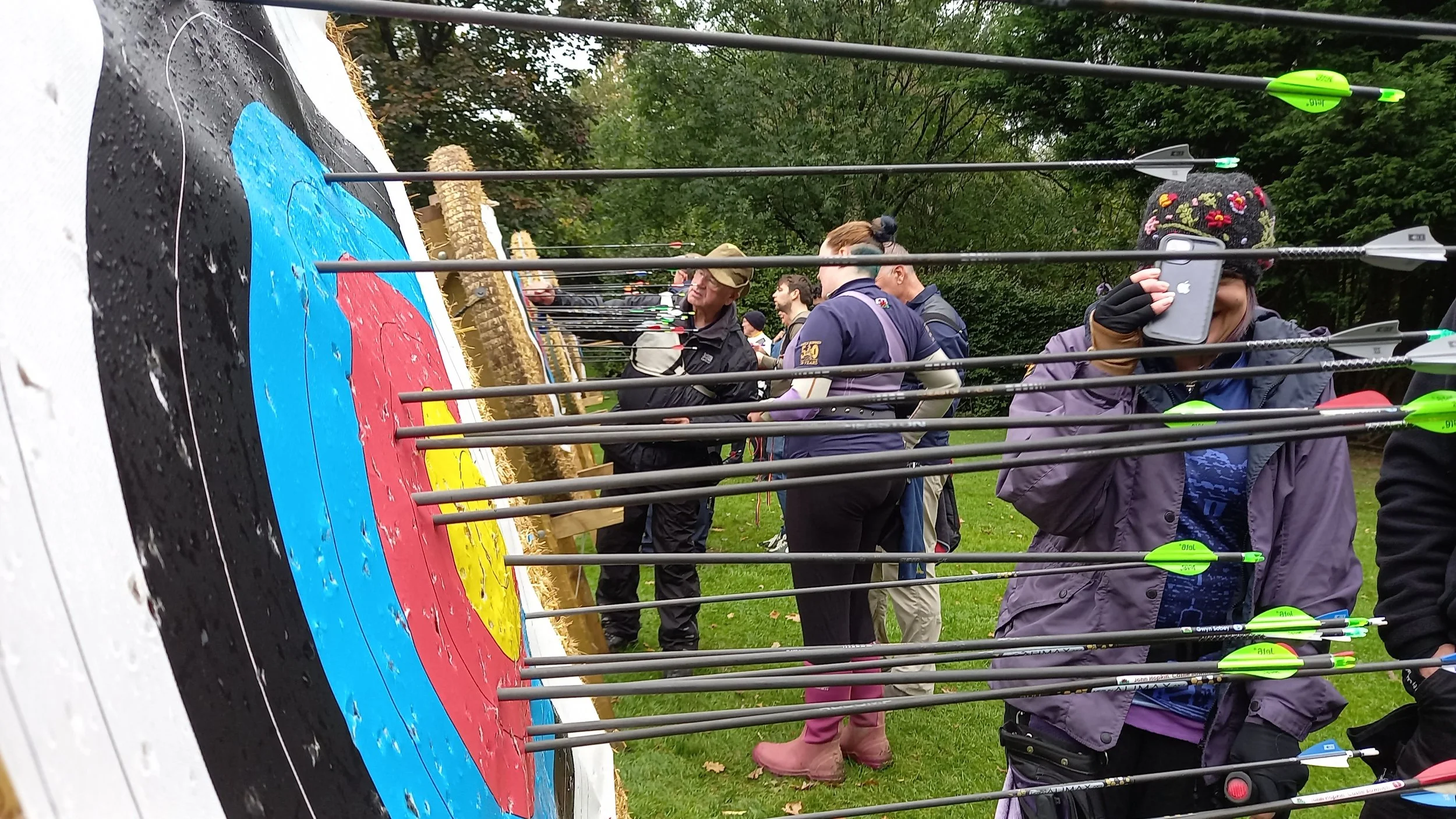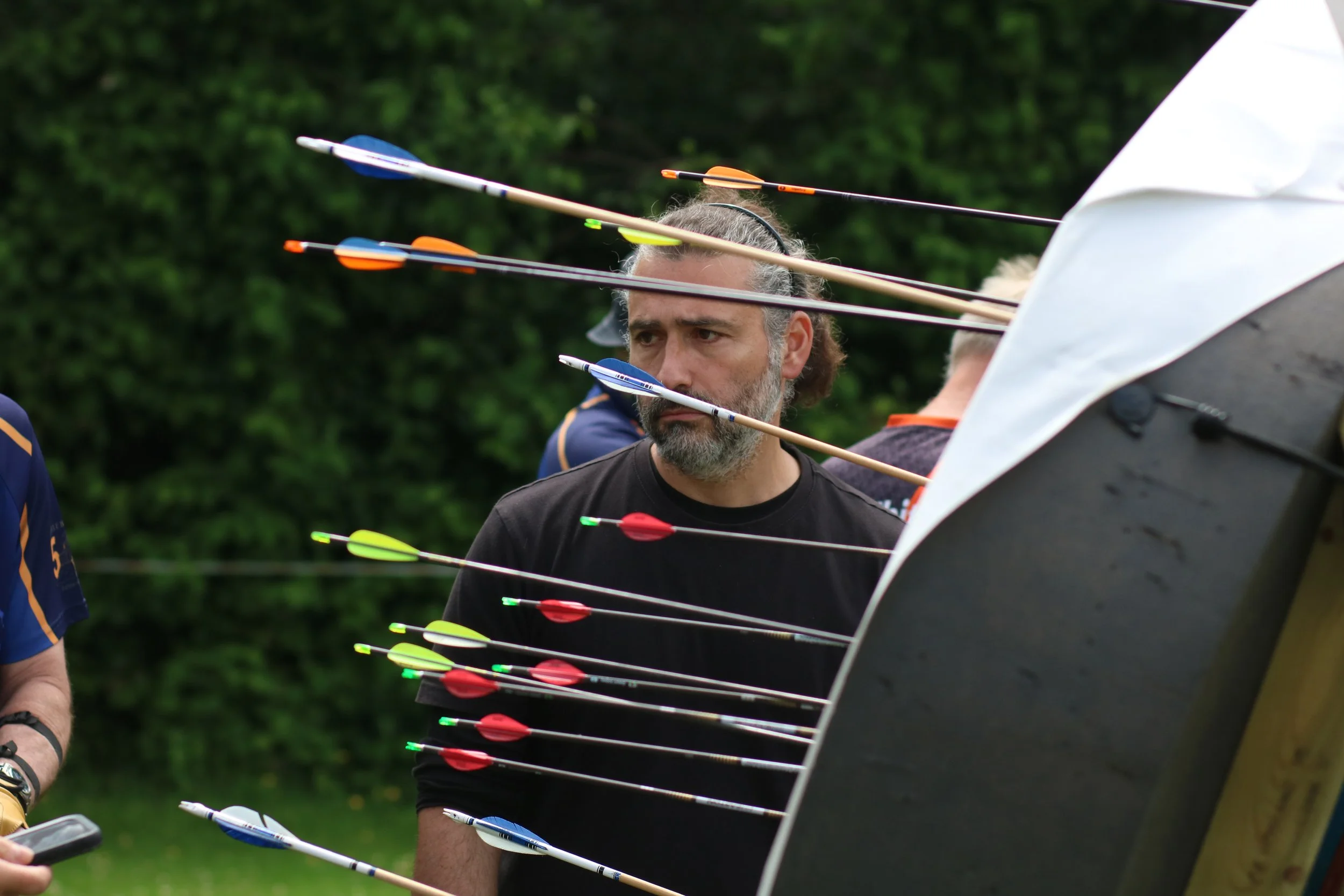 With a gloomy forecast, the range looked less like a sporting arena and more like a Eurocamp, with tents of every shape and size pitched side by side, umbrellas sprouting between them. Despite gusty winds and the occasional downpour (mercifully short-lived), the Castle Bowmen pressed on. By lunchtime, the usual stories circulated: some claimed to be shooting well, most admitted to shooting worse than expected. But that’s archers for you.