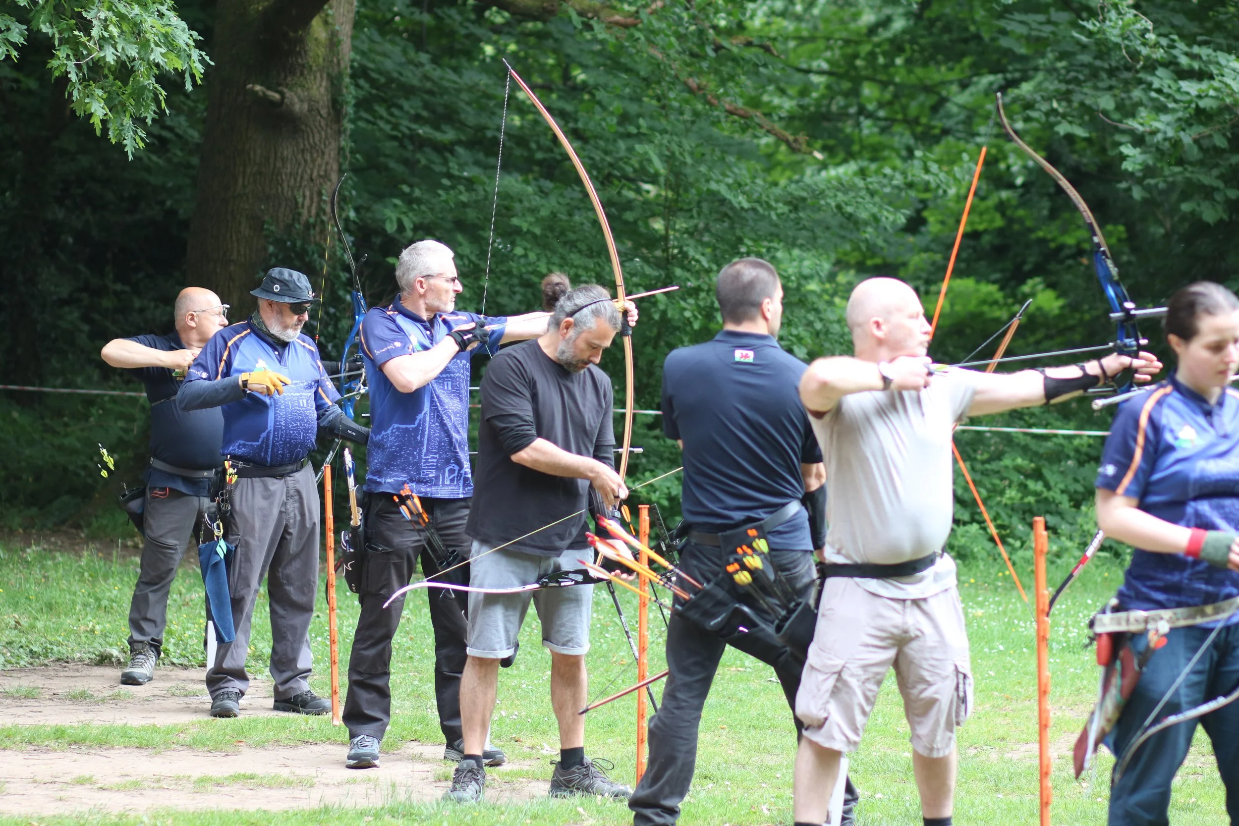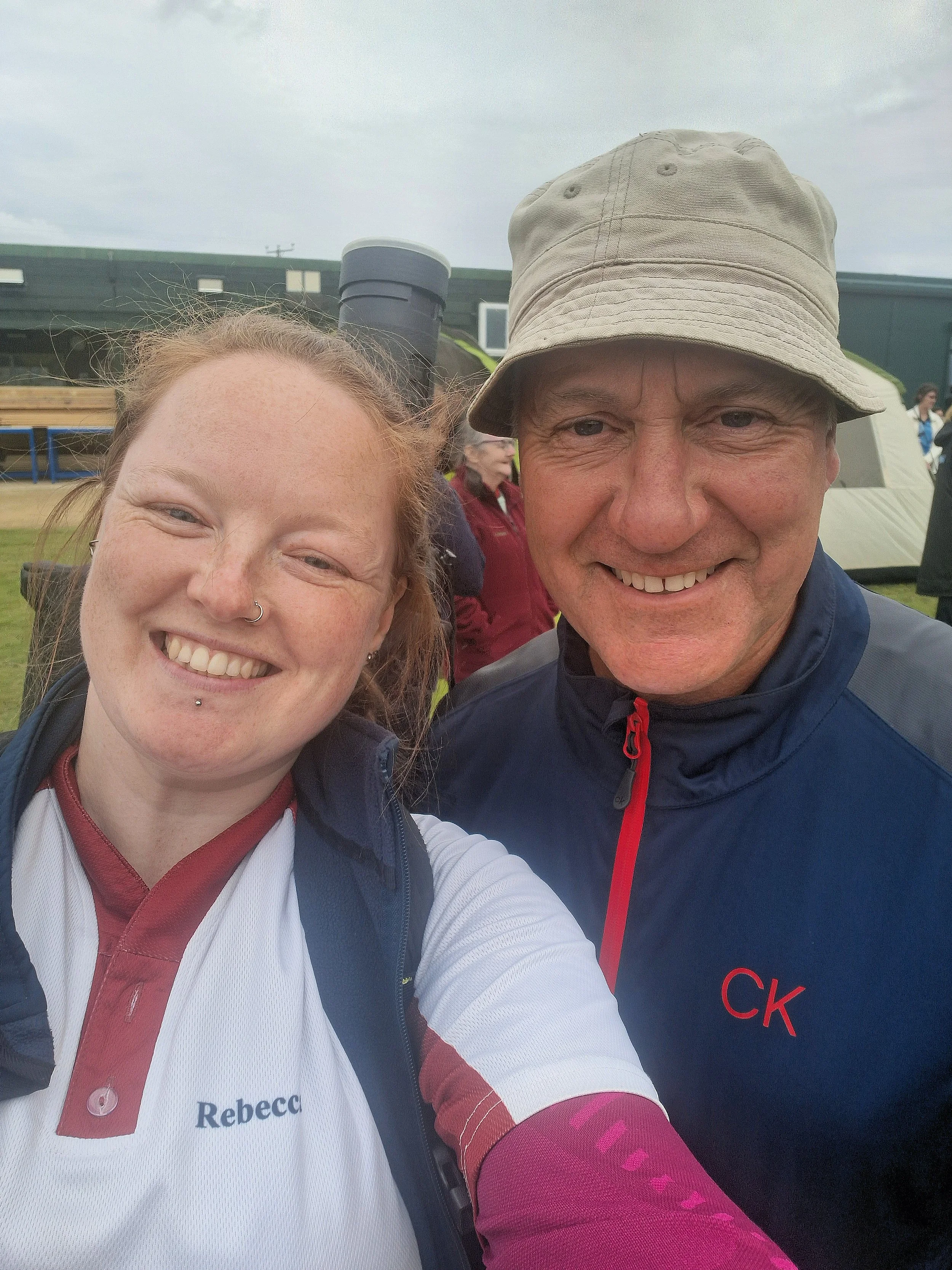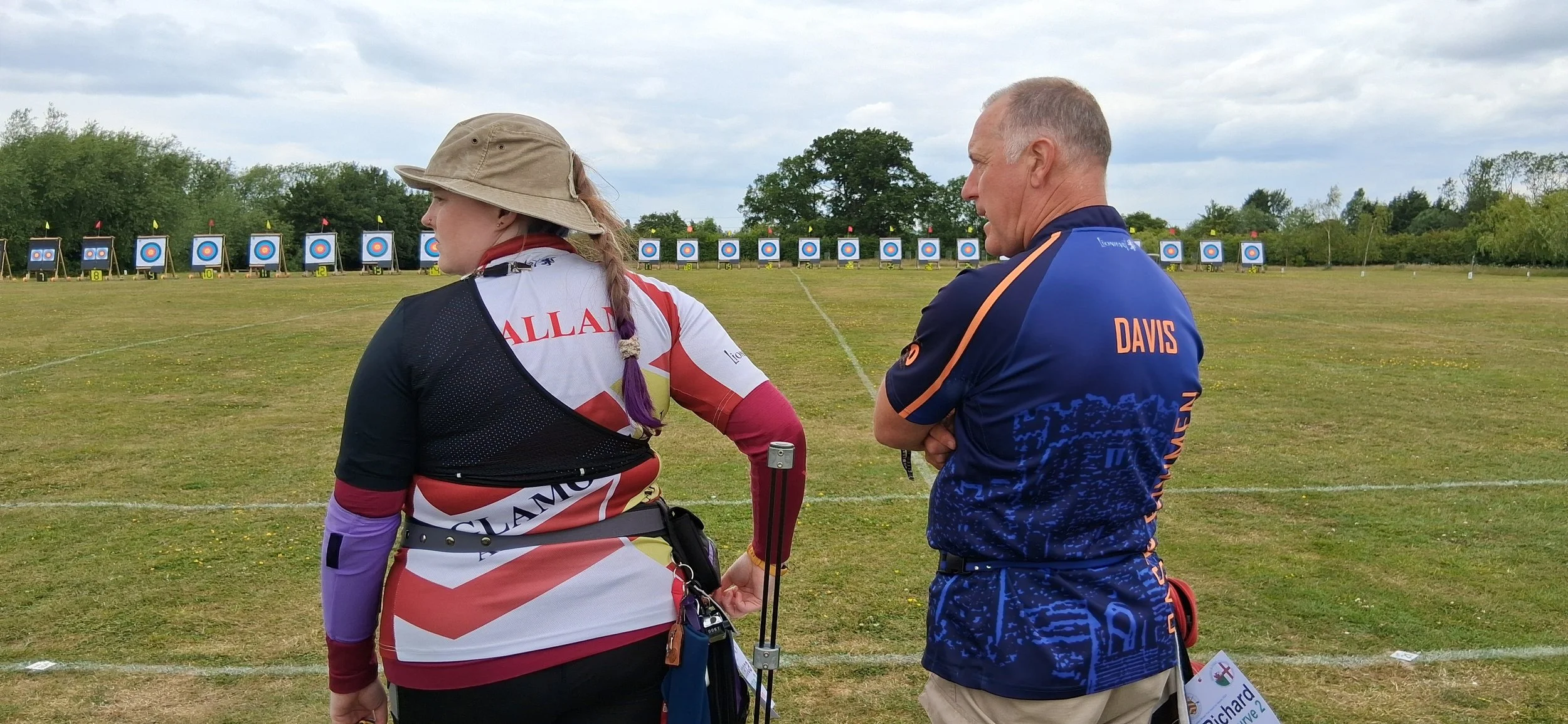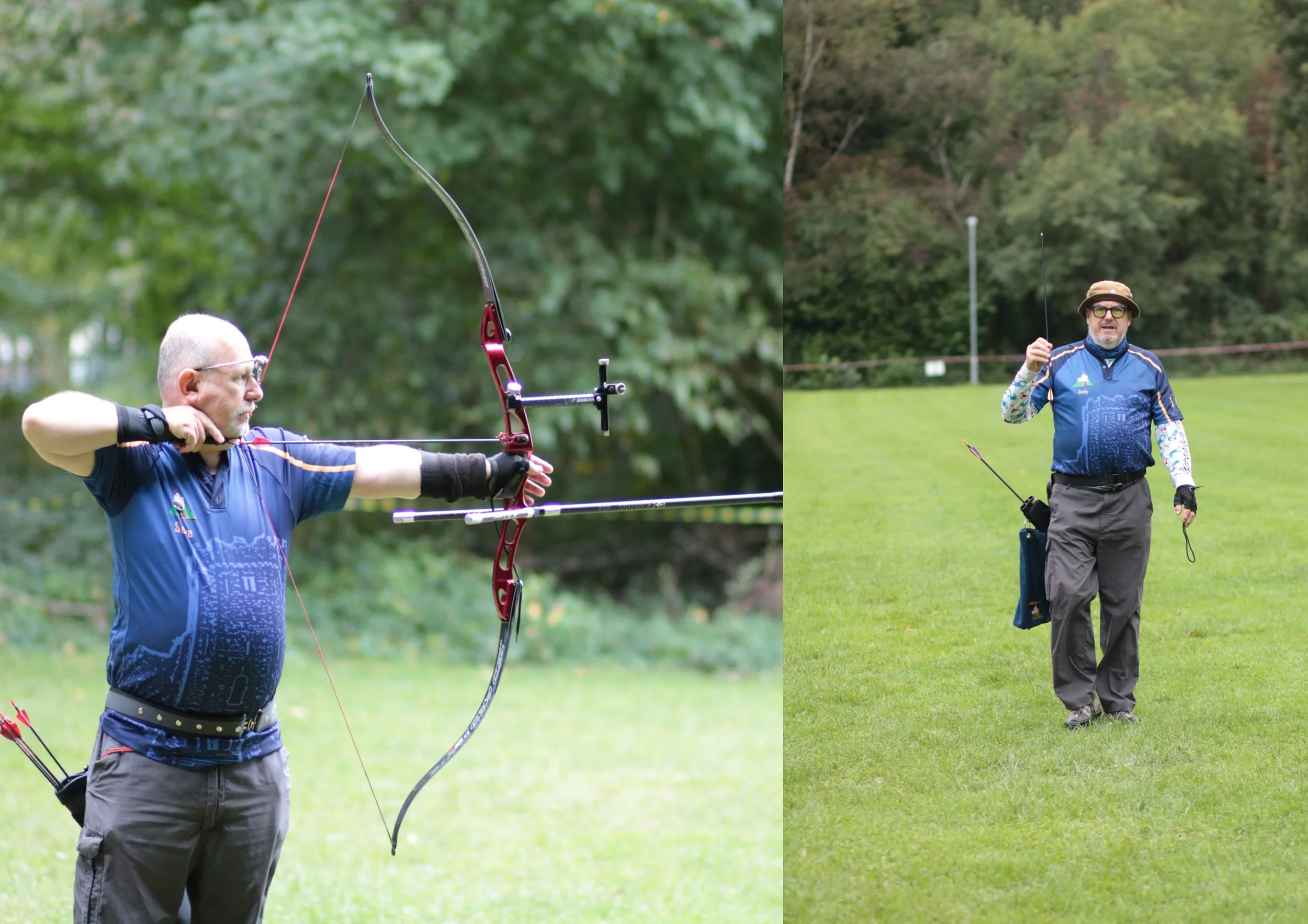 Further down the range, as the targets stretched away, John H battled through to win silver, coming second only to the No. 2 ranked 50+ Welsh longbower. He might have edged closer still, had he not been caught in such a riveting conversation that he waited three and a half minutes, only to be reminded he had thirty seconds left to shoot his end — oops.
