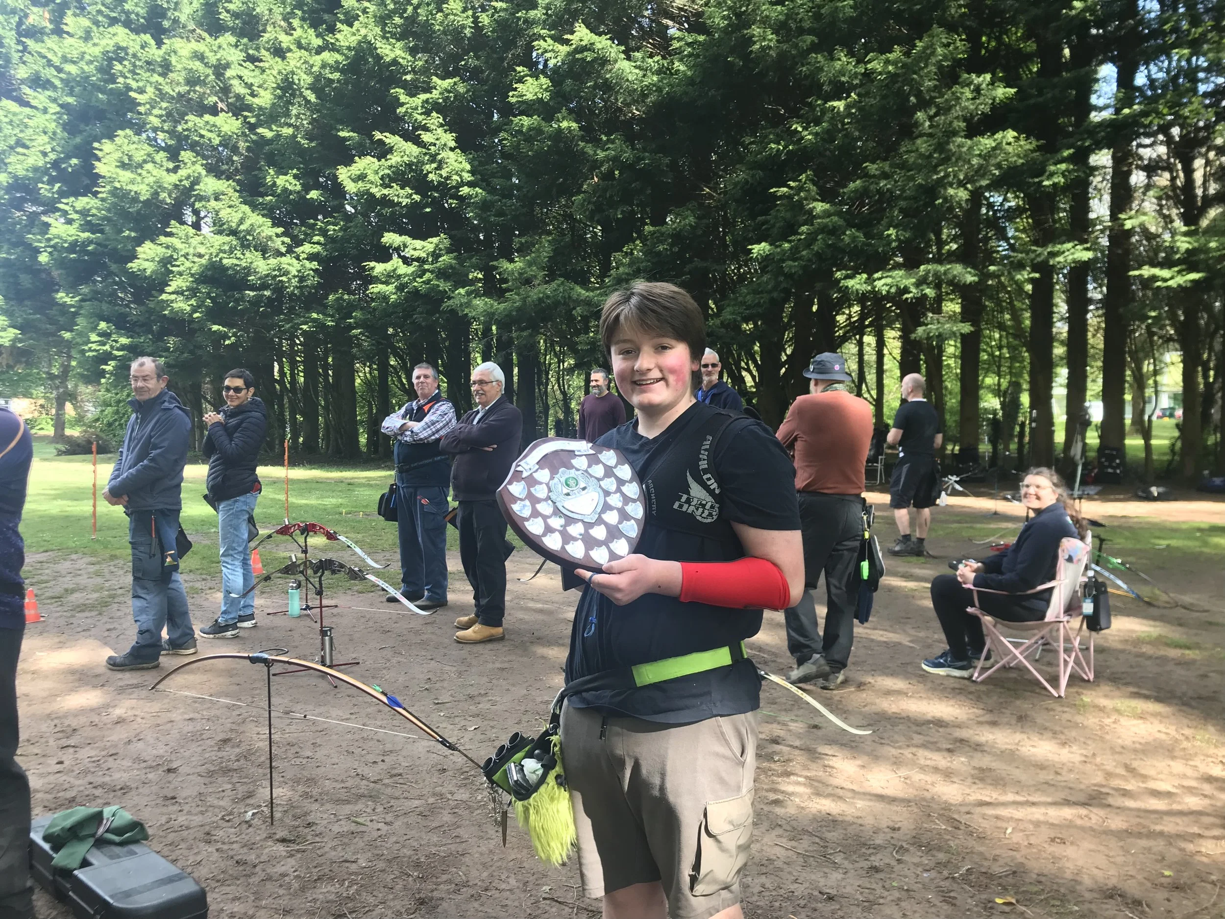 In their first tournament Daniel H’ won Gold in his Junior Recurve category plus a coveted colour prize, while Mark H’ also took home a deliciously chocolatey colour prize.
