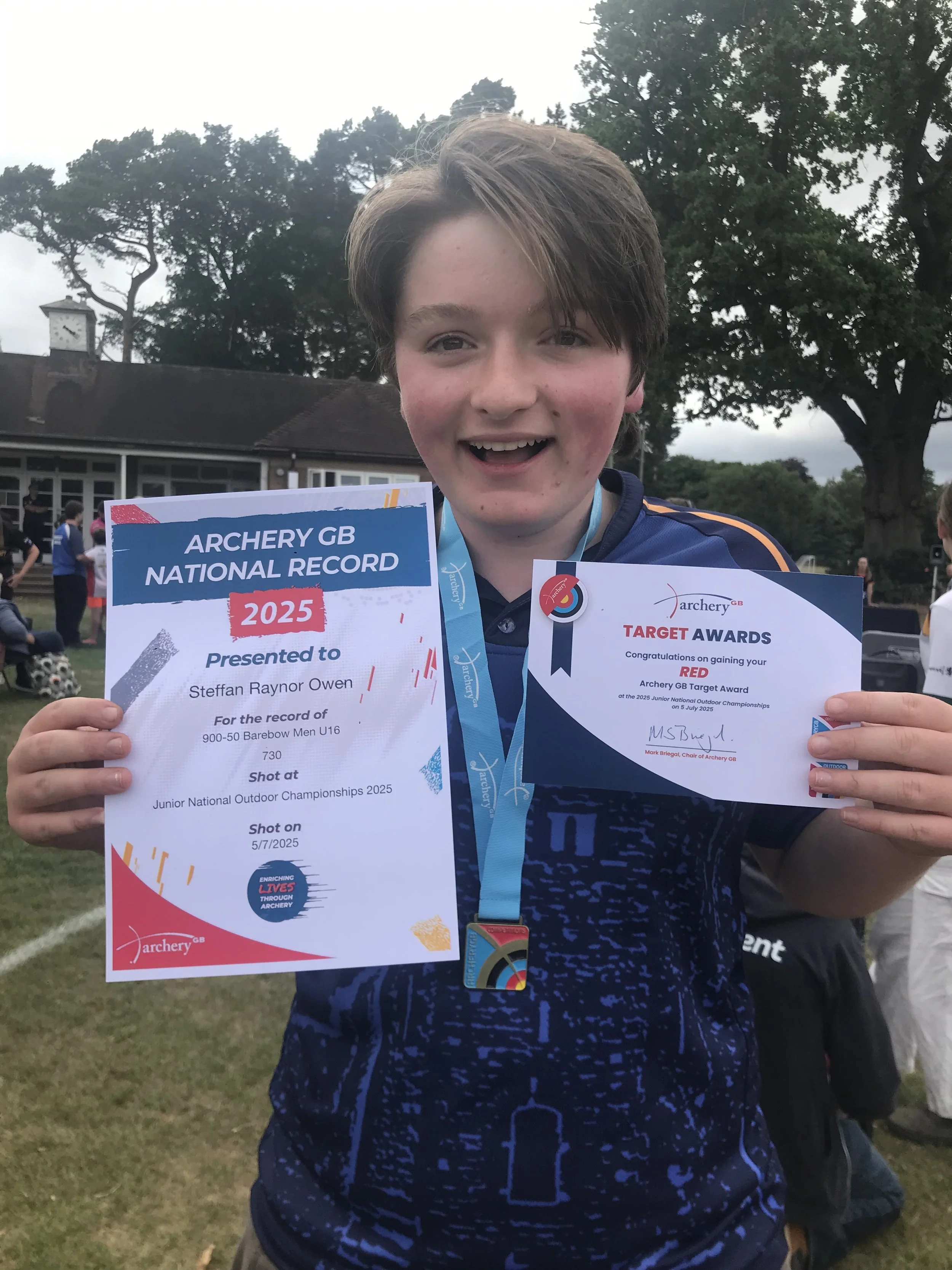 On the junior side, Steff delivered another strong performance, earning gold as Welsh U16 Barebow Champion.