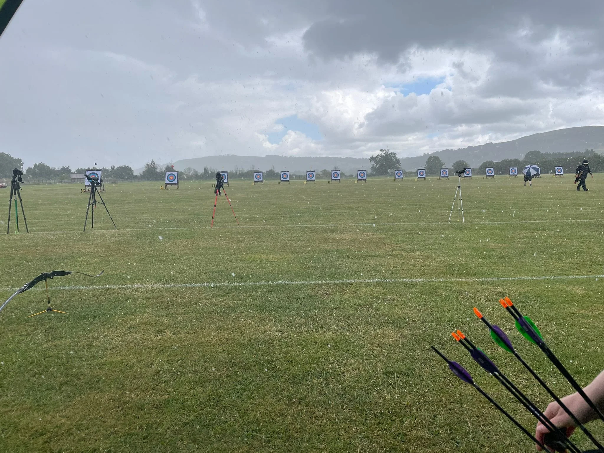 On one of the final Saturdays of the outdoor archery season, a decathlon (that’s ten!) brave Castle Bowmen ventured east into the heart of Gwent to do battle with deadly foes at the Welsh Open Championships—affectionately renamed The Wet Open for obvious reasons.