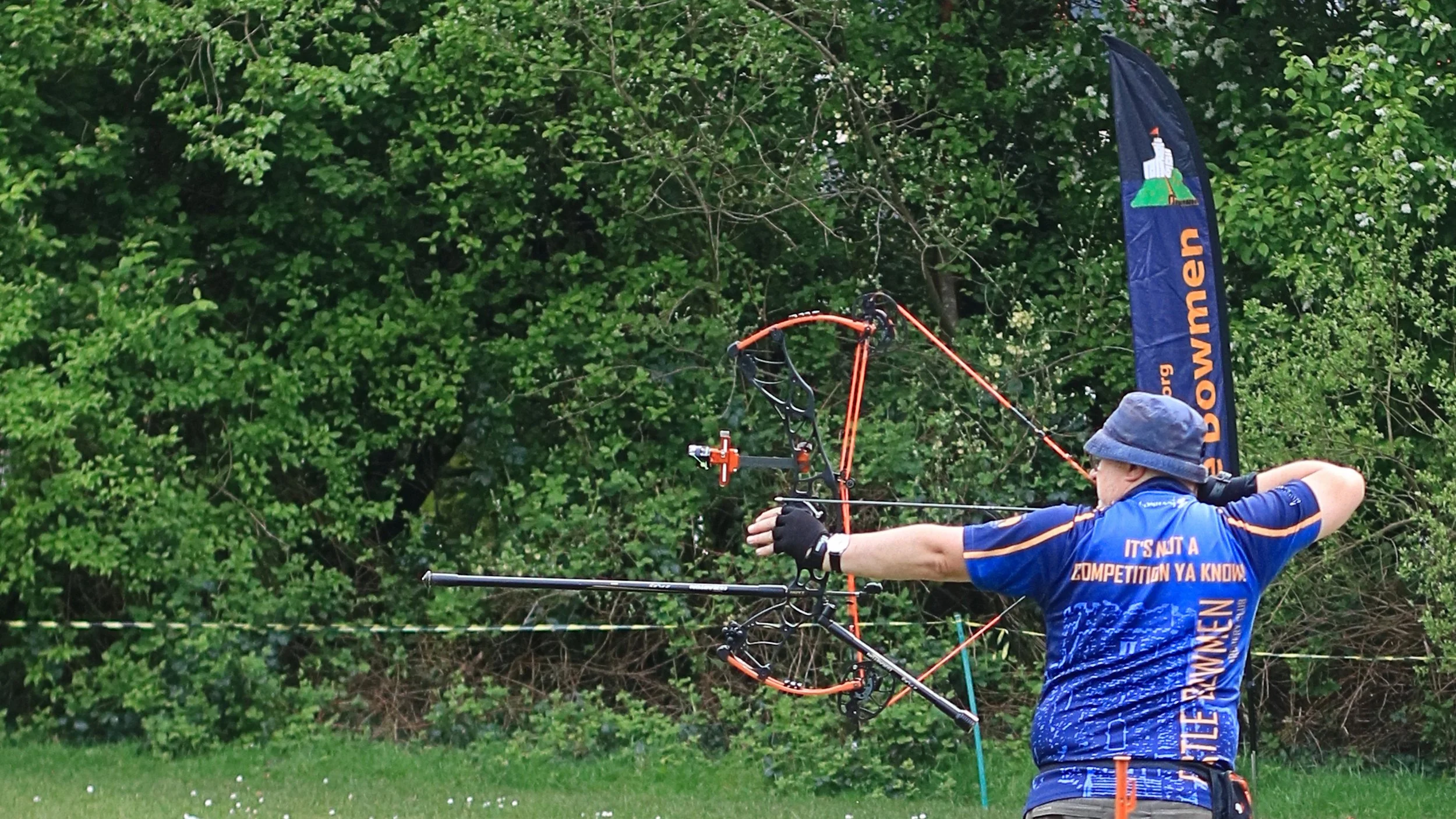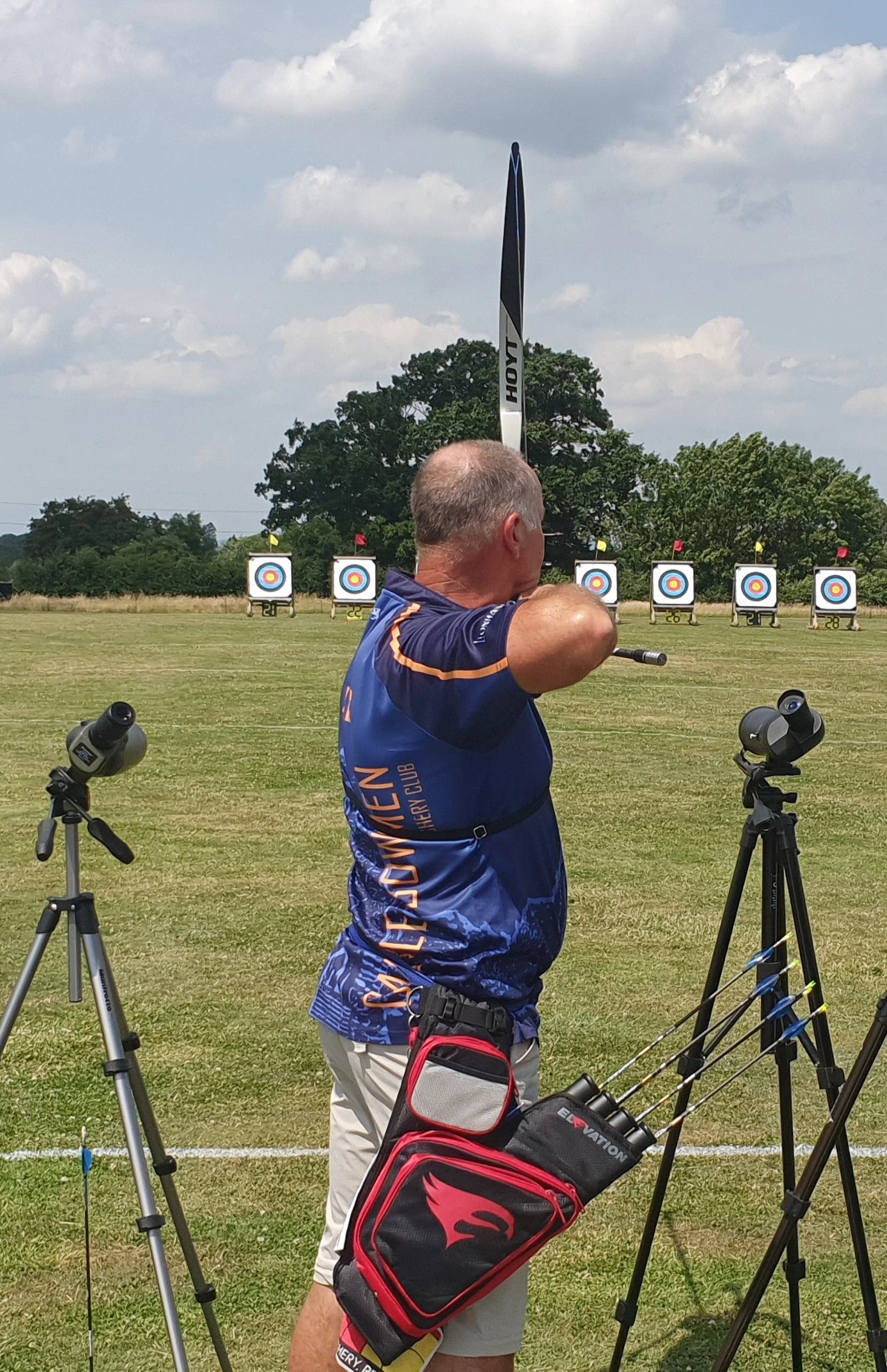 Chris O’ was the sole Castle Bowmen shooting at Bath Archers Spring Albion Shoot: