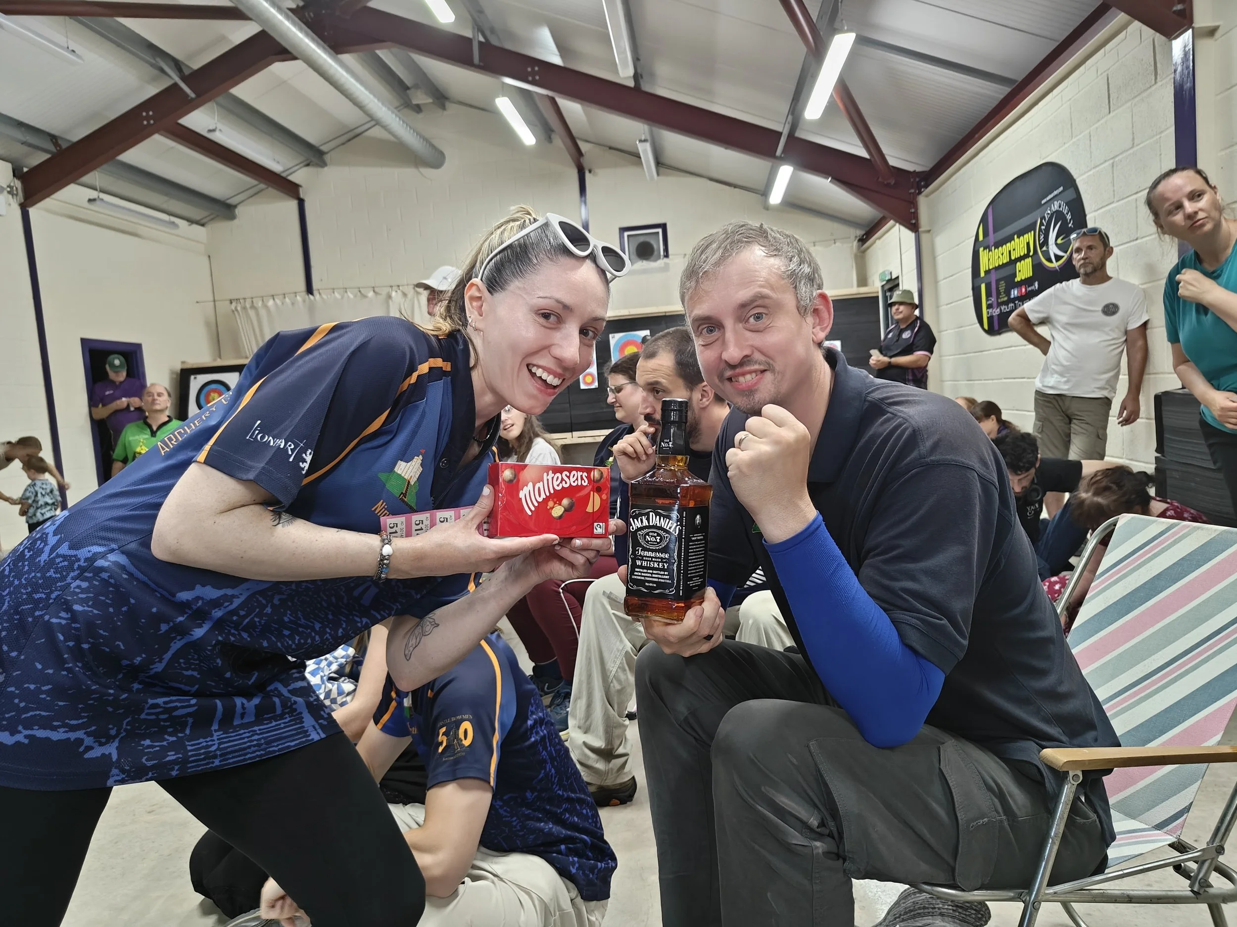 Matt G struck gold and claimed a chalice as Welsh Senior Men’s Recurve Champion, with Greg, Rich, and Gwyn just outside the medals but firmly in raffle territory—except poor Rich, who left with only a Greggs white chocolate chip cookie to his name. For clarification it wasn't actually Greg's, it was Andrews.